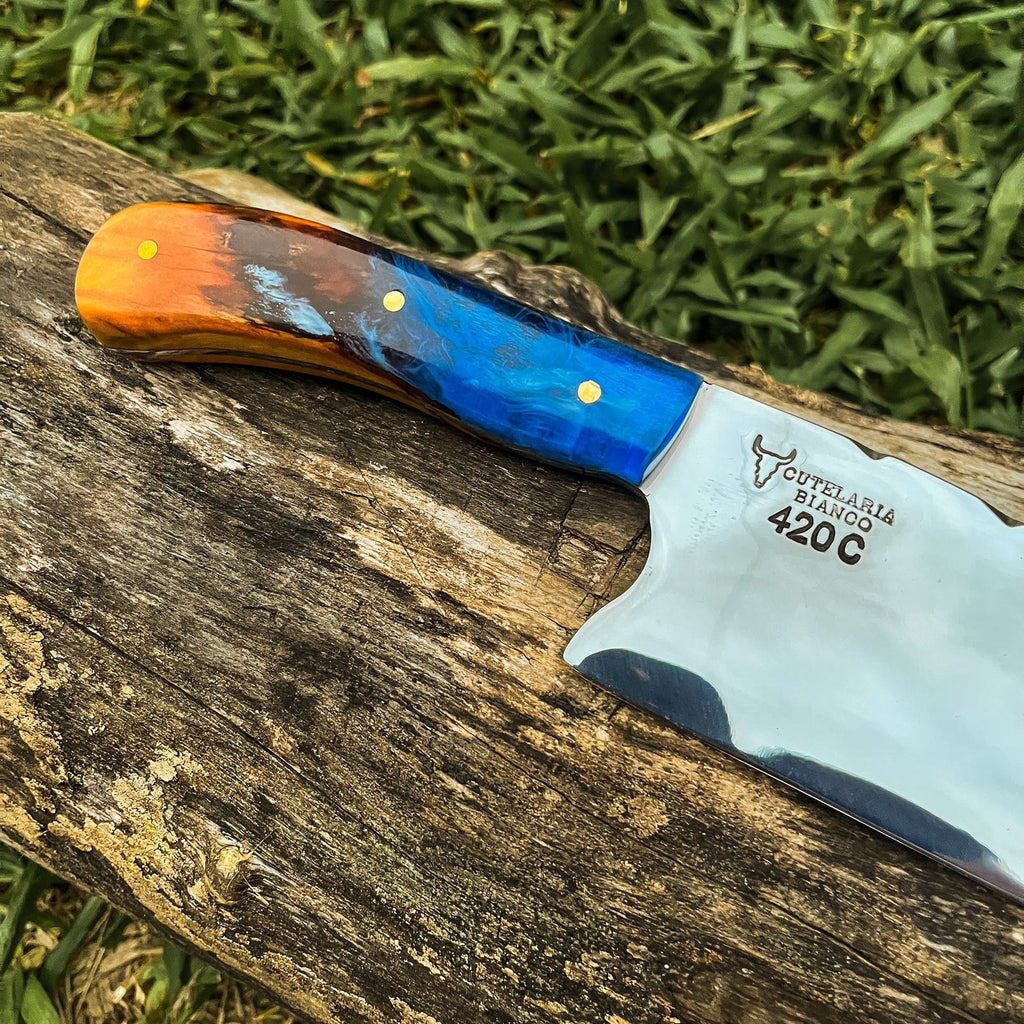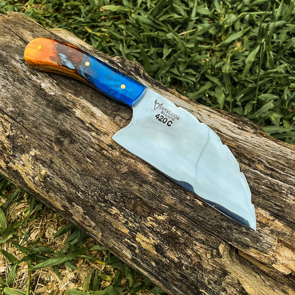Uso versátil: Com vários modelos de lâmina disponíveis, a faca artesanal pode ser utilizada em várias atividades, desde o uso diário na cozinha até atividades ao ar livre, como acampamentos e churrascos.