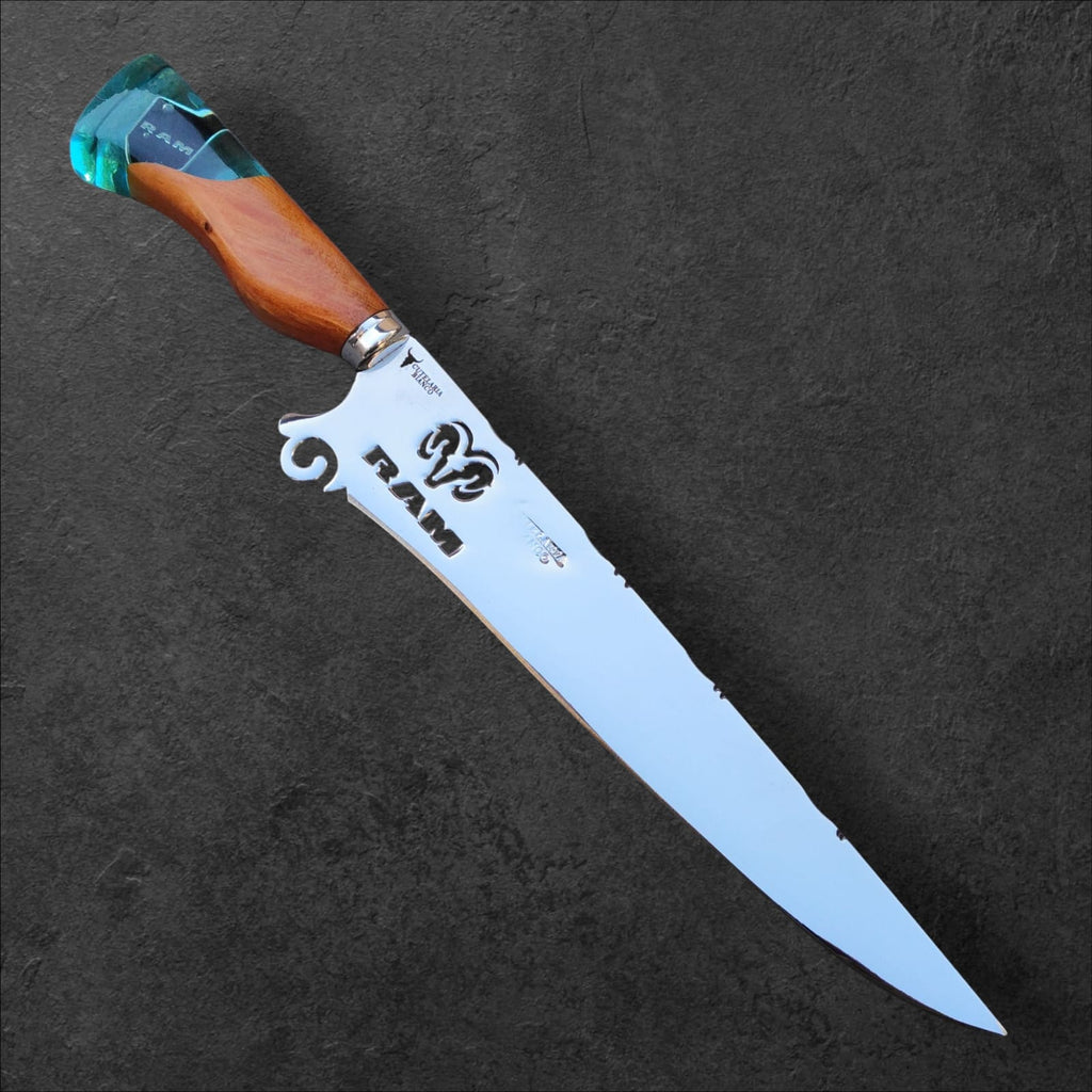 • Lâmina: 10 polegadas, em aço alemão forjado 420C, desenvolvido especificamente para cutelaria de alta performance, oferecendo cortes precisos e durabilidade extrema.