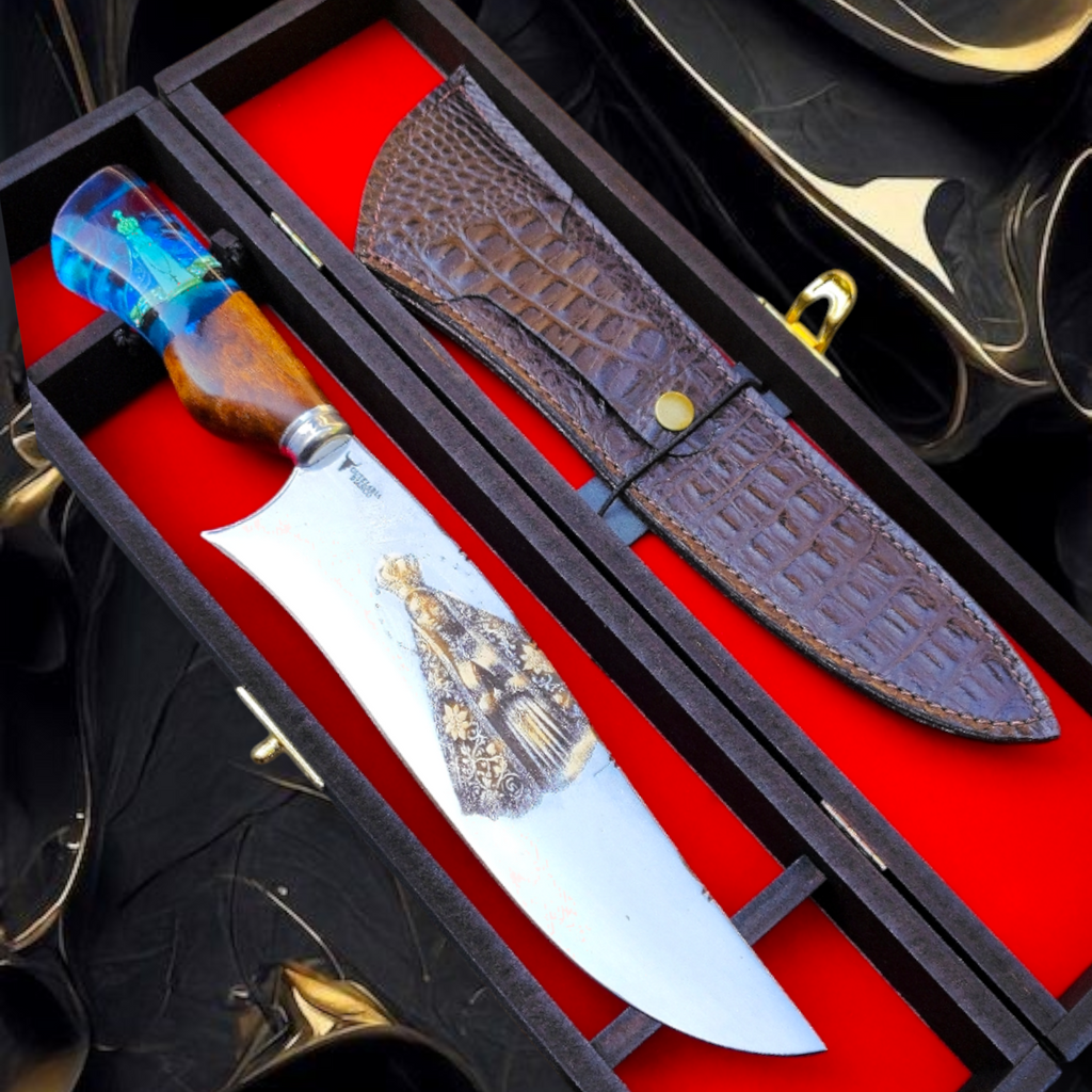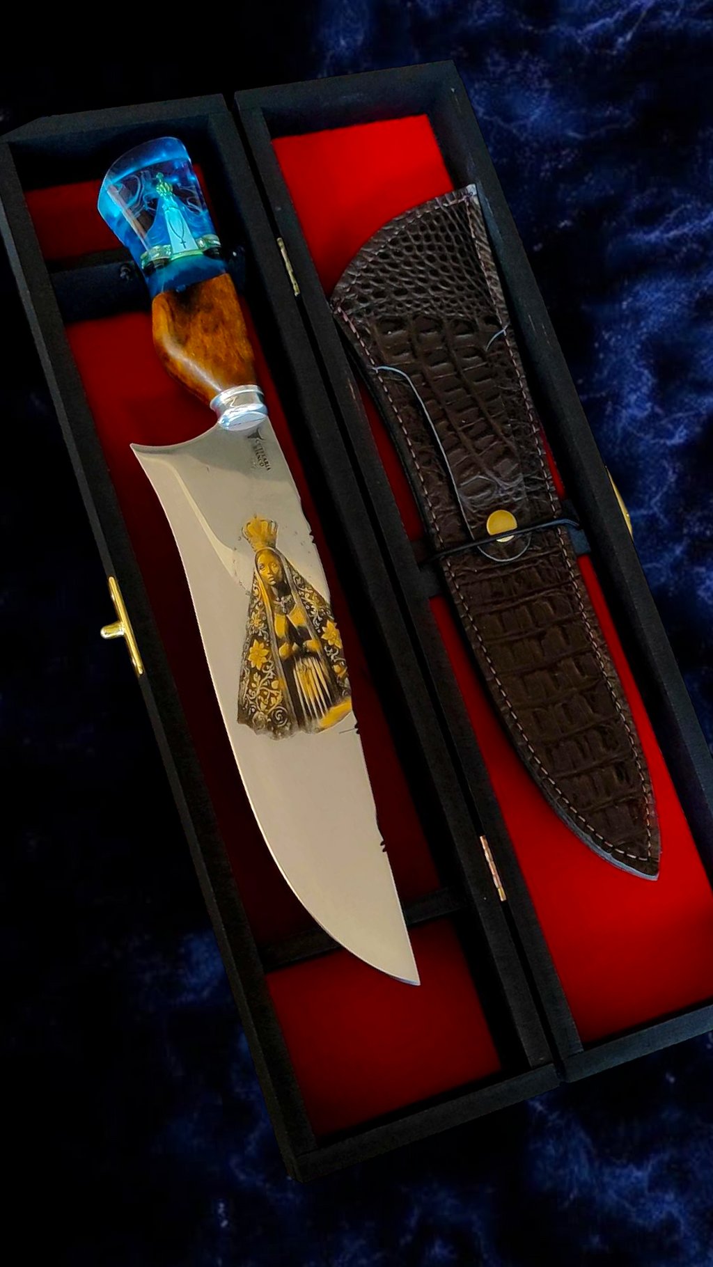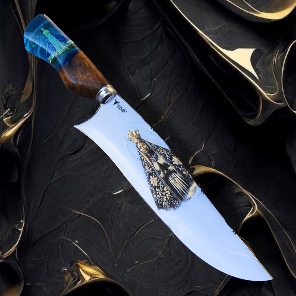Inspirada na fé, na proteção e na força espiritual que guia milhões de brasileiros, a Faca Padroeira é uma peça rara, criada para ser herdada, reverenciada e eternizada.